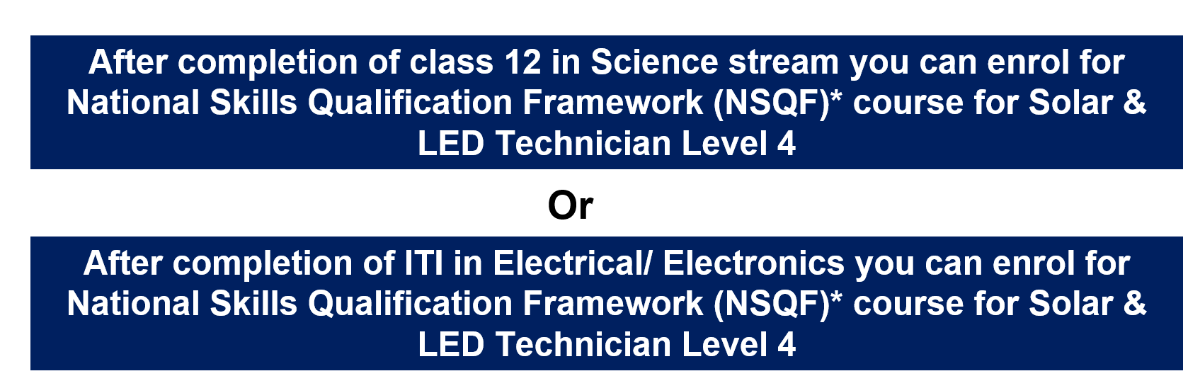 Solar and LED Technicians are taught the basic concepts of electricity, electronics, LED and solar photovoltaic (PV) system. They are also trained to prepare work areas, the structures for panel installation, fix solar LED lighting and connect them to the solar panels using appropriate tools and equipment.